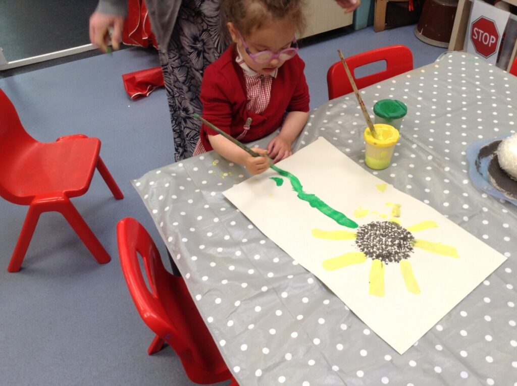 Colouring flowers, painting a sunflower and using the dabber paints.