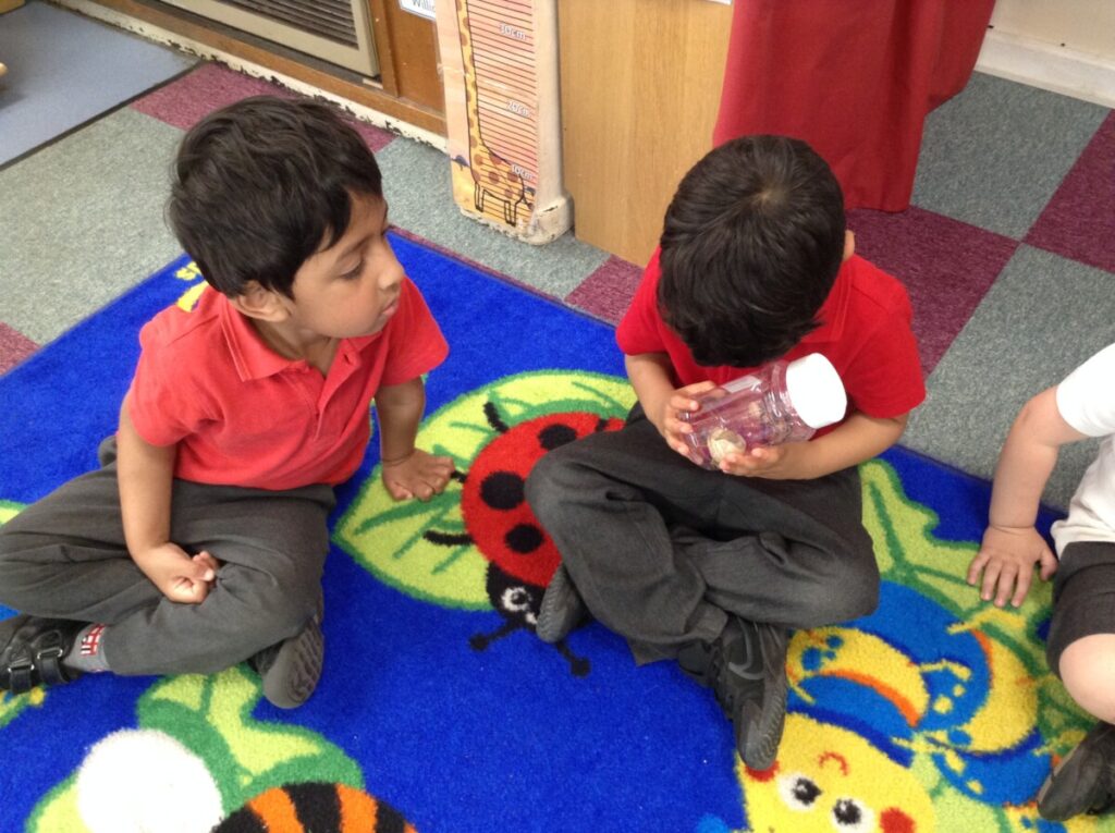 Using the Little Wandle phonics scheme the children learnt the sound ‘v’ and played lots of games to develop their phonemic awareness and oral blending. We also did ‘Rhyme Time’ where the children sang ‘Mary, Mary Quite Contrary’ in different ways such as loud, in a whisper, fast and slow. They also thought about syllables and clapped them, rhyming words and words that began with the same sound.