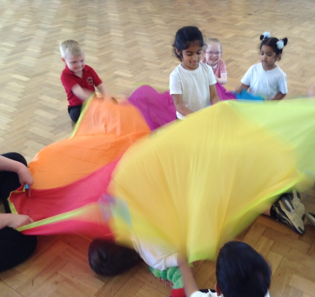 In PE the children enjoyed playing some parachute games!