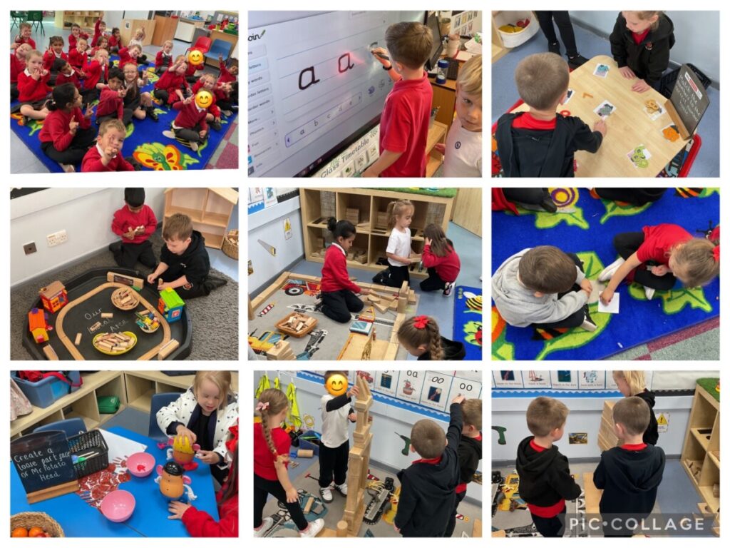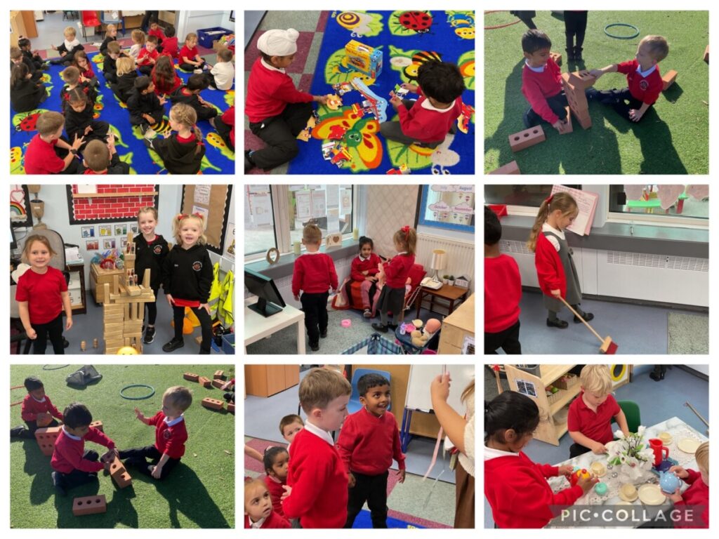 This week has been a busy week! We started learning Phonics and we now know the sounds -s, -a, -t and -p and have had a go at forming these letters. In maths we have been subitising 1 to 3, representing those numbers on our fingers and recognising the numbers in larger groups of objects. Our topic this half term is Let’s Explore and we enjoyed talking and learning about each others families and the different types of houses there are. We read the story Our Class is a Family and spoke about a family is not just who you are related to. We also have completed our first piece of work where we drew who we live with in our houses. During busy time we have had lots of fun making houses using junk modelling, practising letter formation and learning how to tidy up.