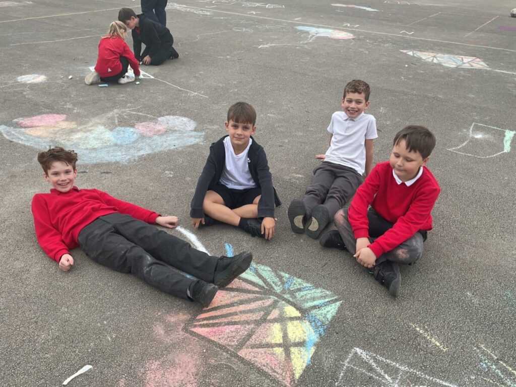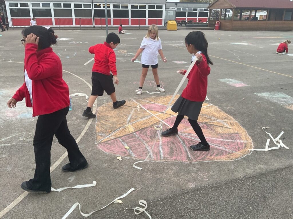 Skills Academy More playground chalk art The children enjoyed using masking tape and chalk to create designs on the playground.