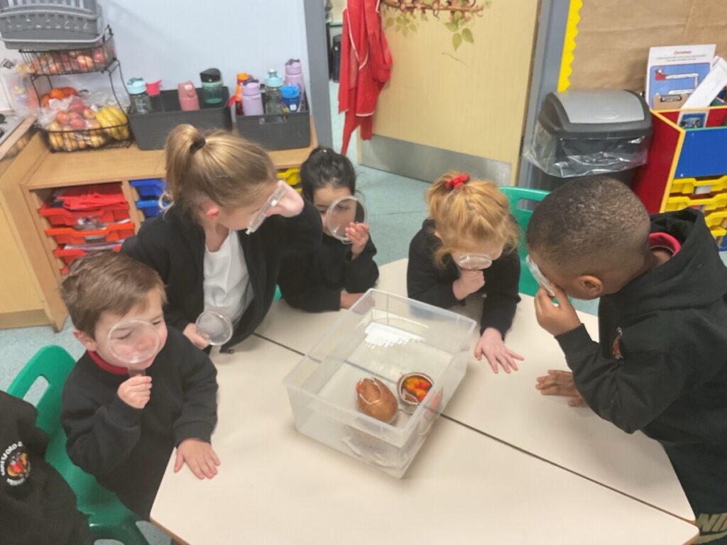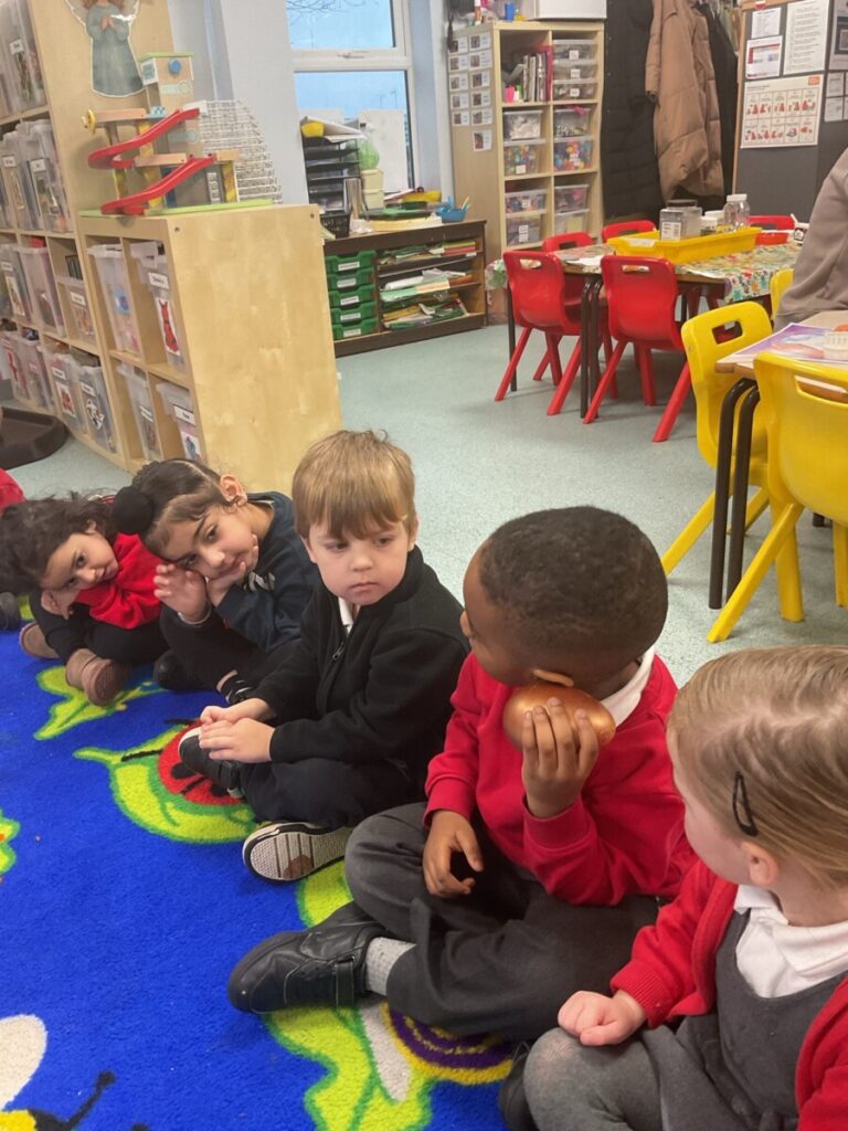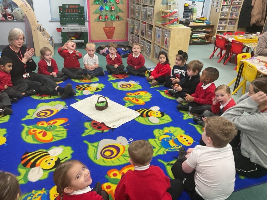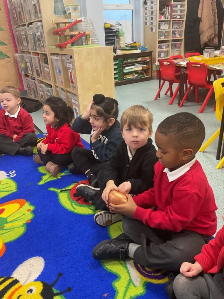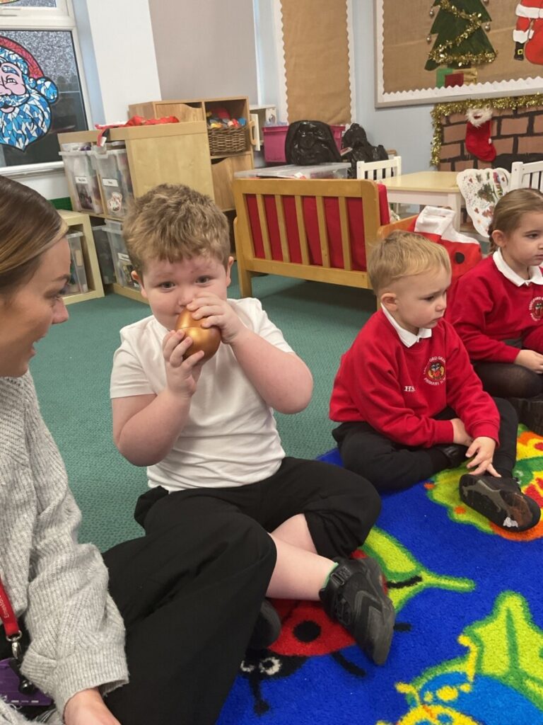 Nursery had a brilliant week creating Christmas crowns for our upcoming party, using repeated patterns with gingerbread men, sweets, stars and other festive stickers. The children also investigated mysterious eggs and made predictions about what might be inside!