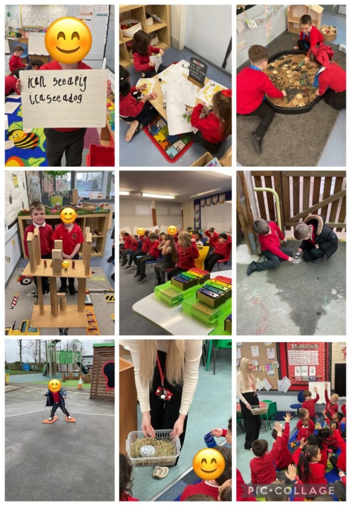 This week we continued to learn phase 3 sounds -ur, -ow, -oi and -ear and tricky words my, by and all. In maths we have been exploring ways to represent numbers using the die pattern. We also secured our knowledge of numbers that make 5 and used double dice frames to begin to explore 6 and 7. We had lots of fun exploring dinosaurs this week as part of our topic! We found out some new facts, named dinosaurs, anticipated the arrival of a new dinosaur that is due to hatch and drew a dinosaur to size! For our writing this week we decided to write a letter to Harry from the bucket full of dinosaurs to see if it was his missing egg! We worked used dinosaur shaped cutters in the playdough, made dinosaurs out of shapes, painted dinosaur feet to print with and used our imagination in the dinosaur themed small world.