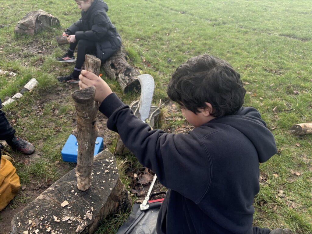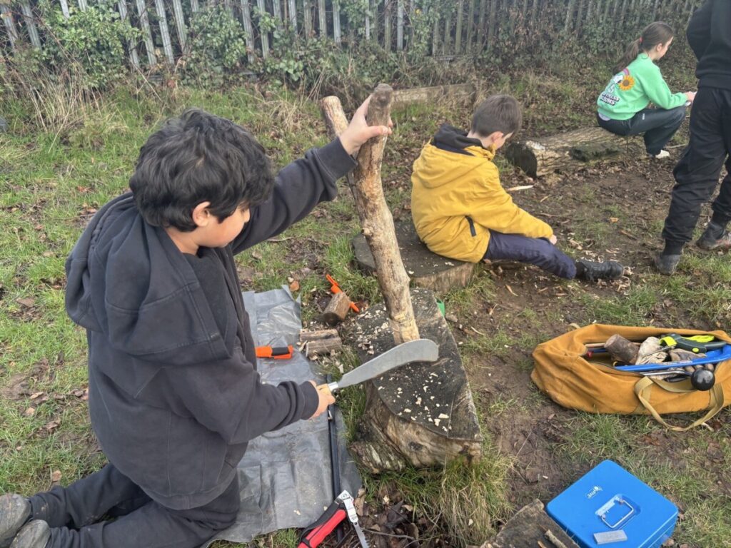 Forest School, Skills Academy Forest School – Skills Academy We’ve been using tools to create tools in Forest School this half term! We demonstrated lots of care and precision when using the billhook, knives and peelers.