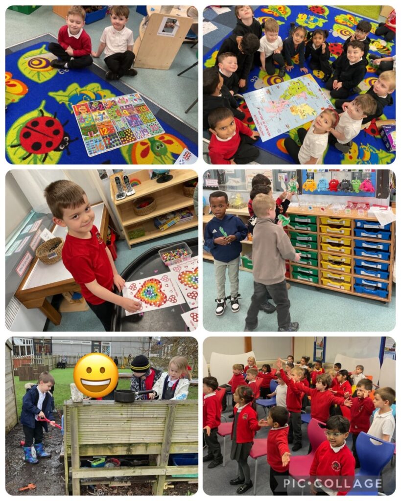 This week we covered longer words in Phonics and in maths we focussed on counting and the value of 1 more than. In our topic we concluded our Long Ago topic by exploring similarities and differences between life now and life in the past by looking at schools, school uniforms and by reading Adoette. We also made Valentines Day cards, furthered our fine motor skills with placing beads on hearts and did some valentines colouring.